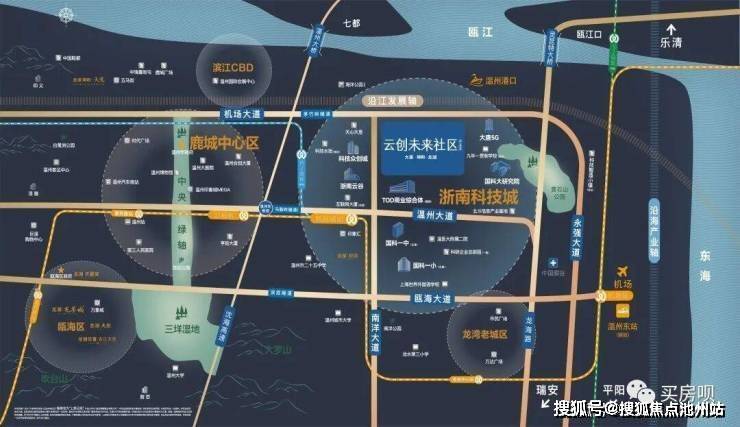 ——【交通】畅享机场、温州东坐(规划中)、温州港、M2地铁(规划中)、S1轻轨等海陆空立体交通